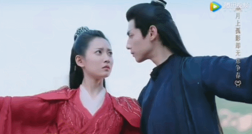 男主与女主因情结难解,在崖边互诉衷肠,女主跳崖,男主赶忙冲上去一把搂住,救下爱人后疯狂转圈圈。