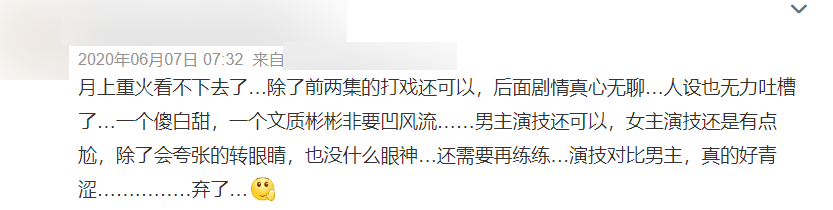 《月上重火》中饰演重雪芝的陈钰琪,也曾被喷过与这一人设适配度极差,只会瞪眼。