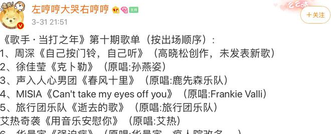 《歌手》第十期歌单放出,周深唱新歌,吉克隽逸第九期被淘汰