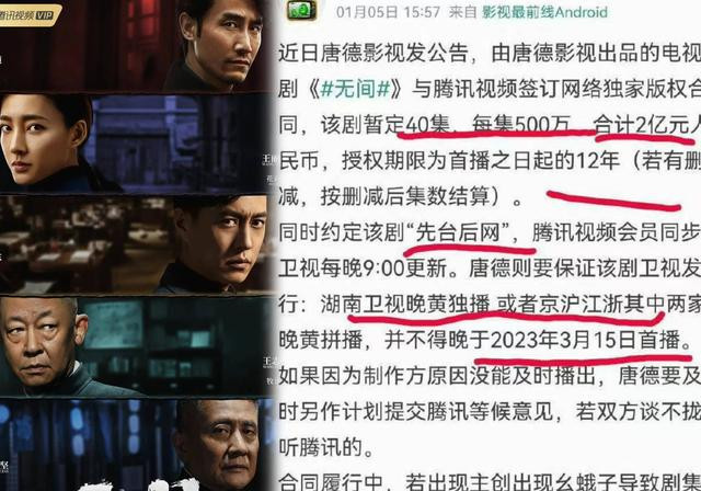 当然,也是有条件的,作为出品方,唐德影视要保证该剧在湖南卫视独播,或由东方、江苏、浙江、北京四家卫视中的两家联播,而首播时间最晚不能超过2023年3月15日。