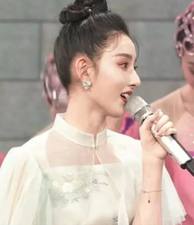 首次在春晚现身的赵丽颖,除了在开场秀中以活泼、娇俏脱的造型和女星们一起表演之外,还演唱了歌曲《满庭芳·国色》。