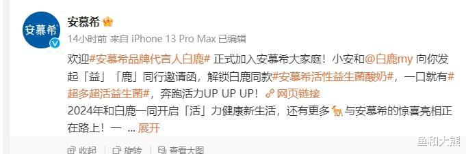 而在白鹿成其新代言人的消息传出后,立马引来了超多网友围观,大部分人都觉得这是一个信号,意味着杨颖彻底被节目组抛弃,后续复出无望。也意味着白鹿后续会是节目组力捧的MC,成功取代杨颖在节目中的地位,成为《奔跑吧兄弟》新一任一姐。