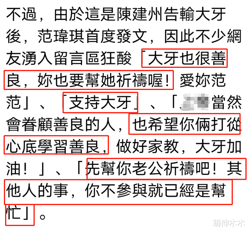 可能有人觉得,骚扰大牙的是范玮琪的丈夫陈建州,范玮琪也是受害者,陈建州哪怕起诉失败都毫发无伤,怎么就抓着范玮琪一人骂呢?