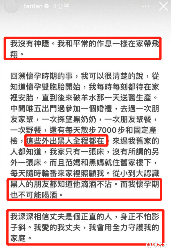 ——她发文反驳了郭源元,虽然没有明说,但明里暗里都在指责郭源元说谎,用“我家只有一张床”、“黑人朋友都知道他滴酒不沾”来反驳控诉,一句“我深深相信丈夫是个正直的人,身正不怕影子斜。我爱我的丈夫,我会用全力守护我的家庭” 足够看出范玮琪的态度了。