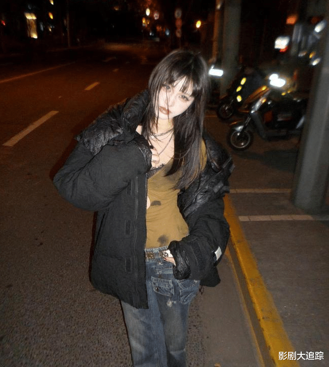 还有一张她深夜在外面的照片,倒是也知道冷,还知道专门套上件棉服,但这也遮挡不住她那颗火热的心,为了凹造型还露出半个肩头,不知道耍完酷,回去肩膀会不会受凉!