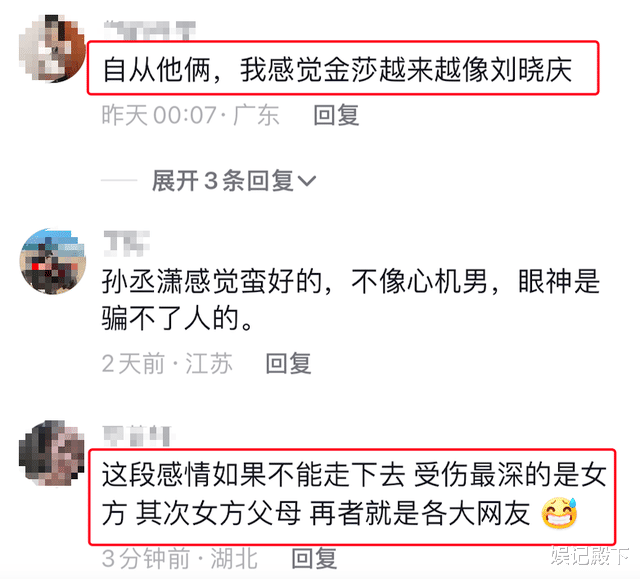 其实对于这两人的感情以及这段红毯亲嘴视频,大部分网友都是无法理解的,于是不少人纷纷在网络上调侃:“自从两人在一块后,感觉金莎越来越像刘晓庆”。