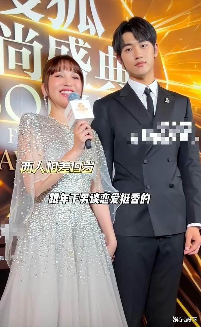 当天的金莎穿着银色亮片长裙,虽然礼服很漂亮,但发型依旧是齐刘海丸子头,与今年已经40岁的她有些格格不入,而旁边与她牵手一同走来的是他23岁的男友孙丞潇!