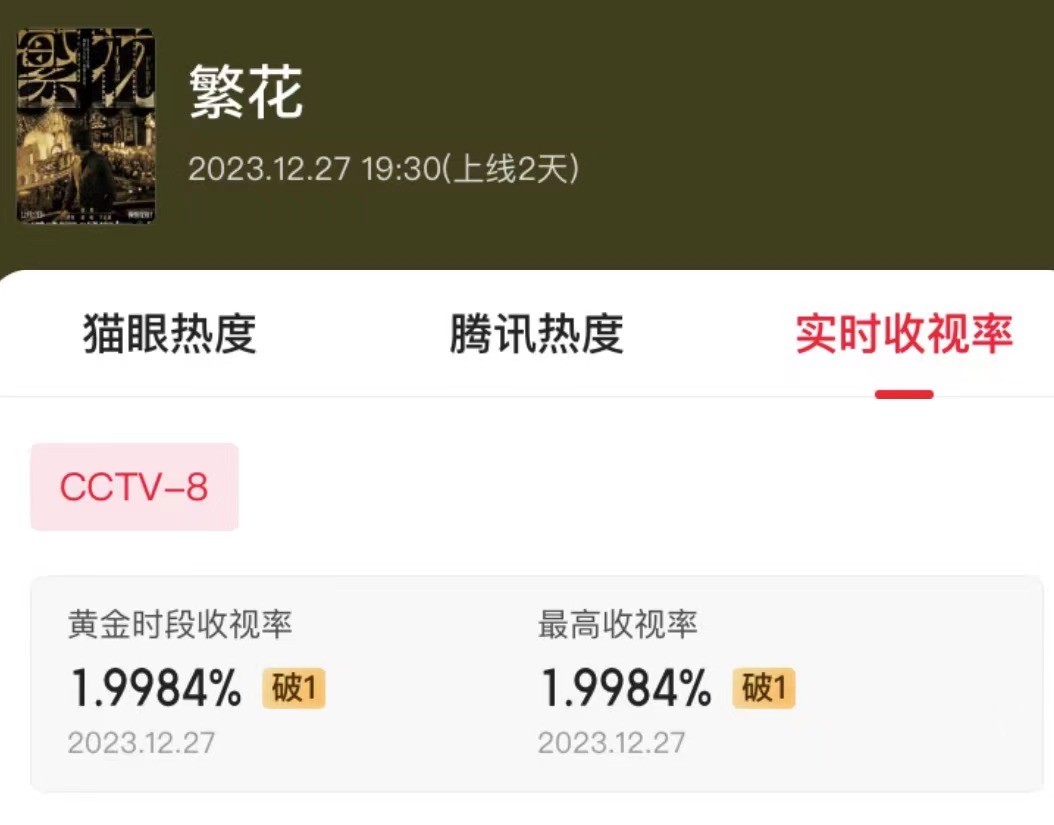 即将进入2024年,央视直接放出了跨年大剧《繁花》,一开播收视率直接飙到第一,很快就要破2了。