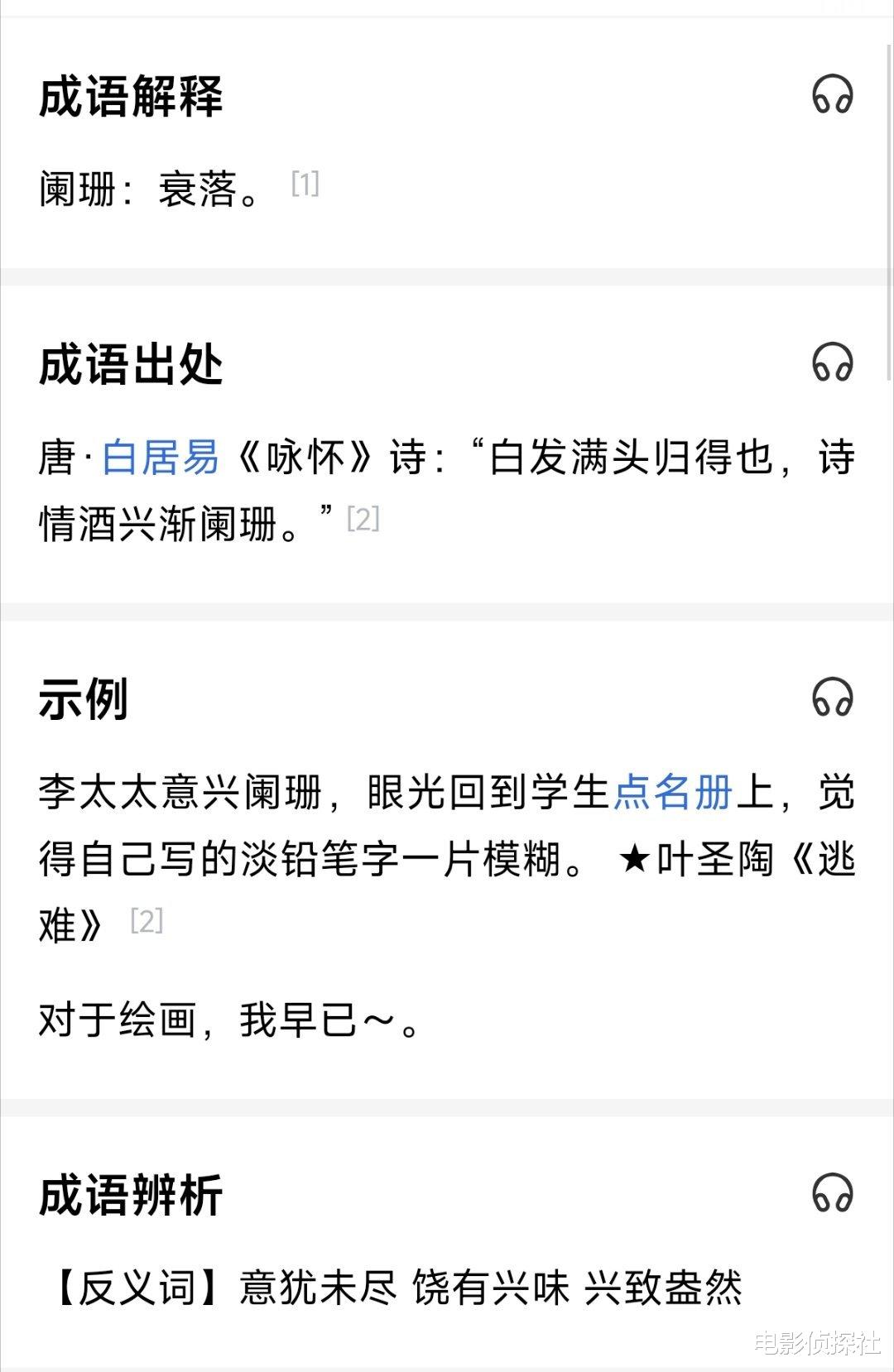 其中“阑珊”则有“衰落”的意思。