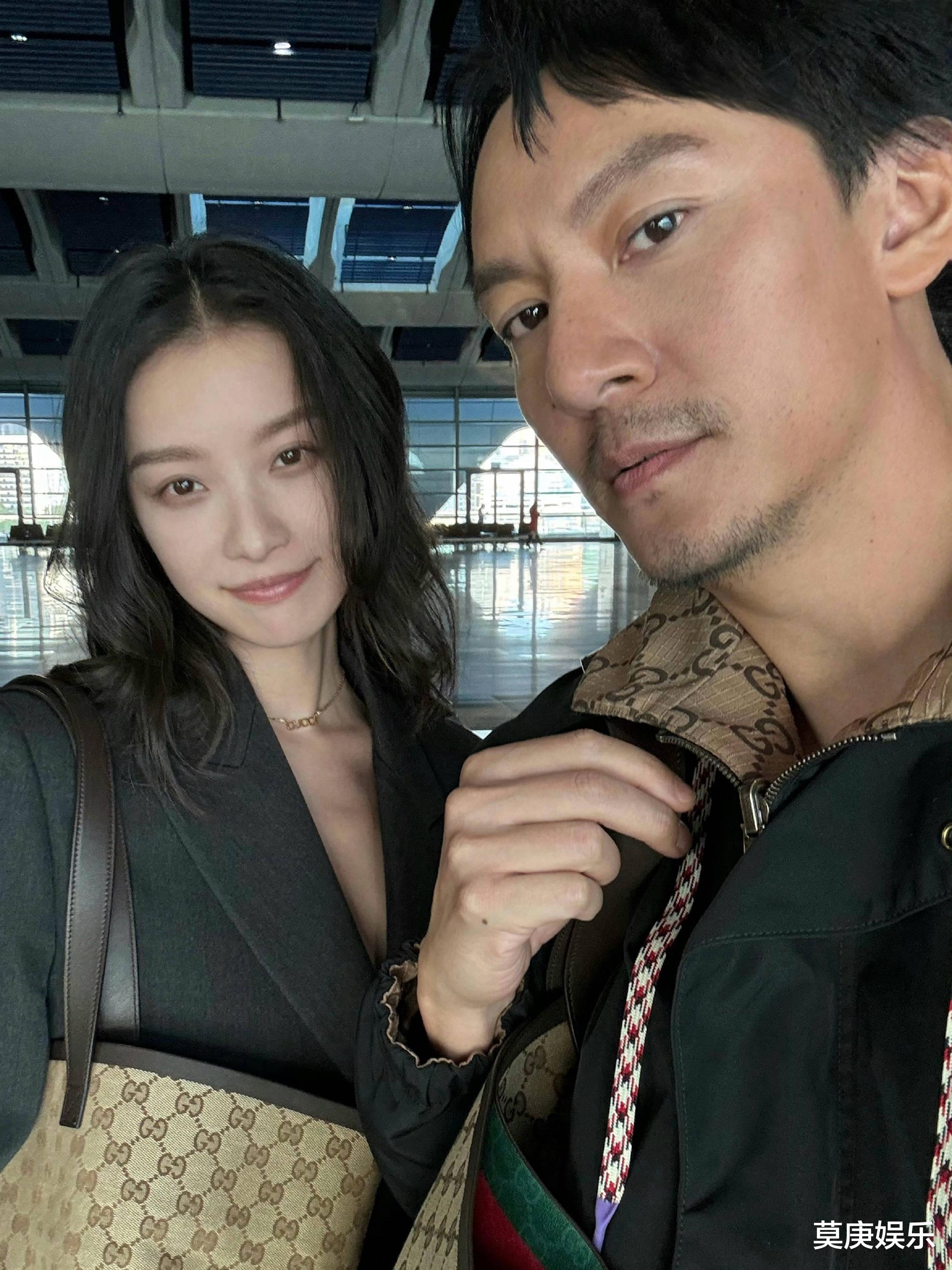 张震倪妮机场偶遇亲昵合影,倪妮衣领过低引争议,被指内衣都露出