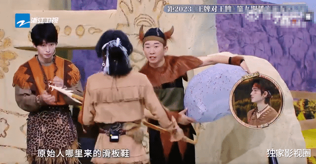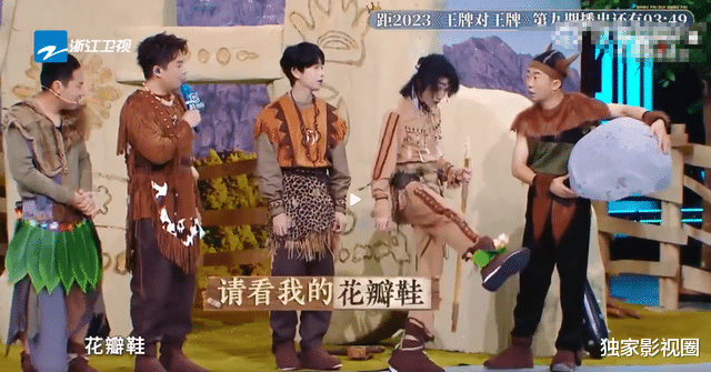 《王牌对王牌》挑选队员时,花花边唱《我的滑板鞋》边炫酷出场,在被杨迪质疑“原始人怎么会有滑板鞋呢”时,立马展示自己鞋上绑着的花朵,“滑板鞋”秒变“花瓣鞋”,可以说相当有理有据了。