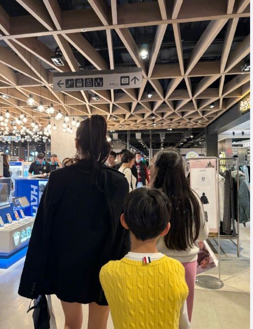 一家人先是去到商场买东西,旁边的小女友应该是汪希玥,她穿着白色毛衣搭配粉色长裤,汪希玥又长高了不少,个子已经超过了新妈妈的肩膀。后面穿黄色毛衣的则是弟弟汪希霖,汪小菲新女友还给姐弟俩买了不少礼物,之后又去了游乐场。