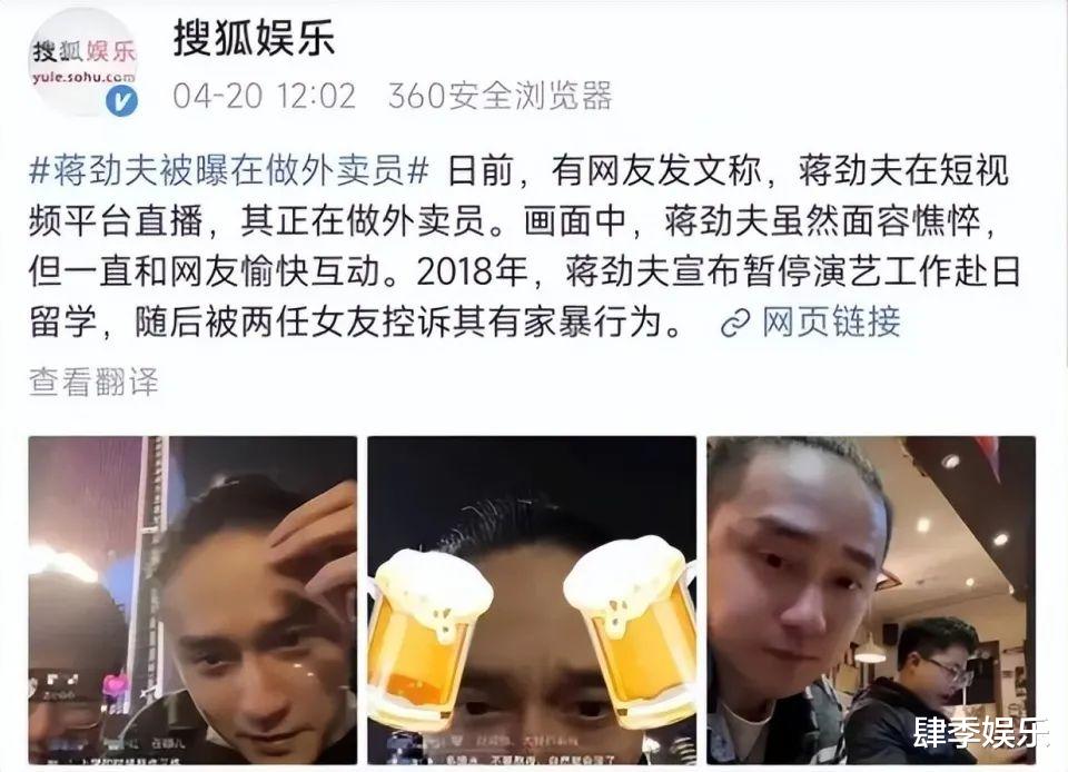 除了高虎之外,还有一位曾经的演艺圈“顶流”也选择了送外卖为生,他就是蒋劲夫。蒋劲夫曾经被捧为胡歌的接班人,事业前景一片光明,但他却因为家暴事件而声名狼藉,演艺事业也因此受到了严重的影响甚至可以说是直接断送吧。
