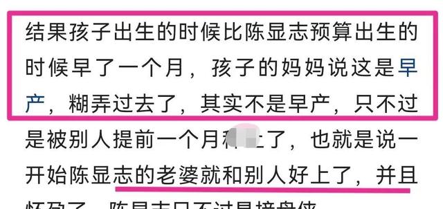 在他和余某结婚之前,她就已经怀孕了。后来孩子提前出生,女方声称这是早产,陈志显相信了她的说辞。