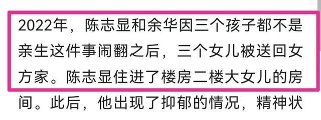 陈志显曾经流泪抱怨说,即使有一个女儿是他亲生的,他也宁愿选择保持沉默。