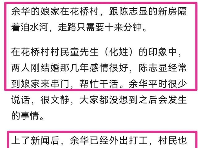 据当地邻居透露,两人刚结婚时关系还不错。陈志显经常去岳母家帮忙干活,而余某出了这件事后已经外出打工了。
