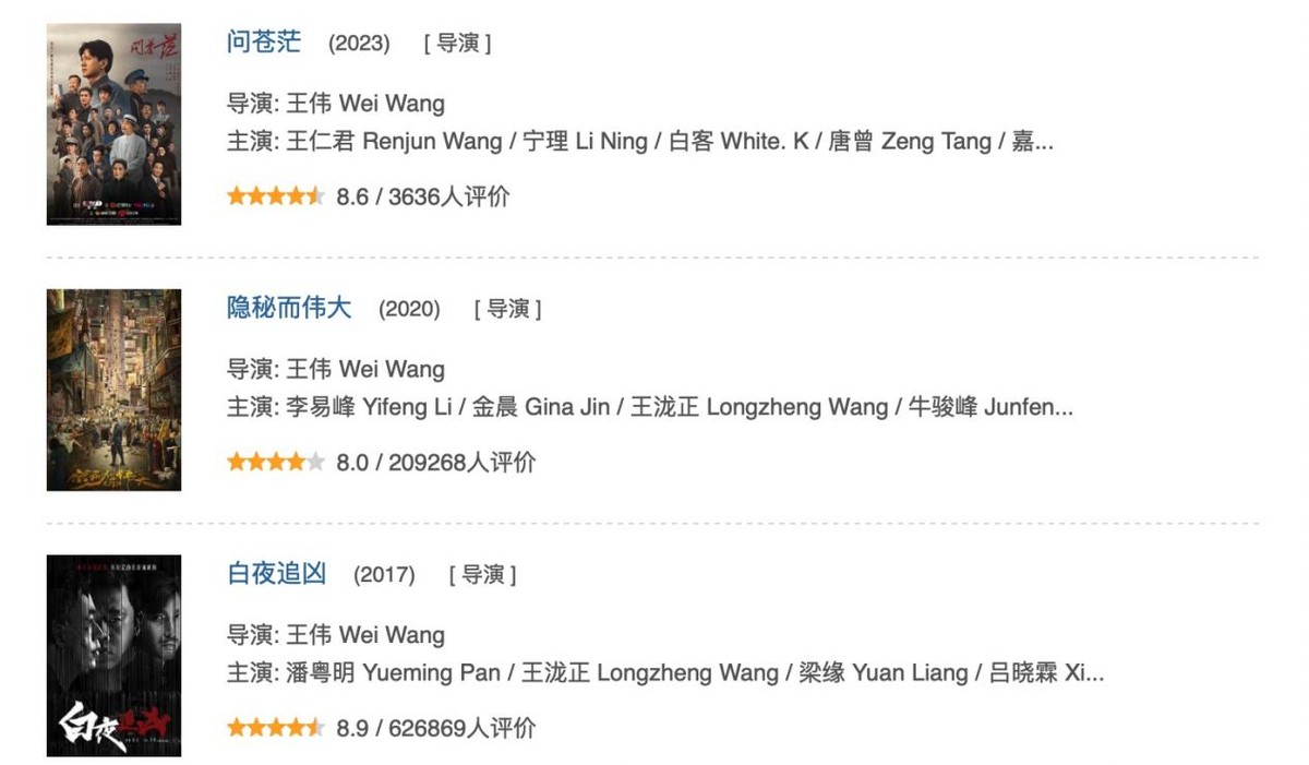 导演王伟本身就是一位知名的幕后制片人,在《问苍茫》之前,他的代表作是8分的大爆款剧《隐秘而伟大》,是8.9分的《白夜追凶》,他的实力有目共睹,而令人意外的是,相对于之前的谍战和悬疑题材,《问苍茫》的质感又正又红,这是王伟从未尝试过的题材和风格,但是《问苍茫》的口碑风向,再度证明了他突破舒适圈的成功。