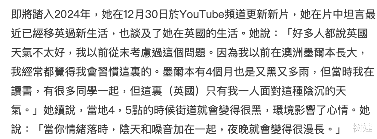 39岁港姐自曝已移居英国,称难以适应当地天气,独自生活深感寂寞