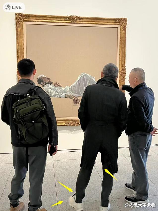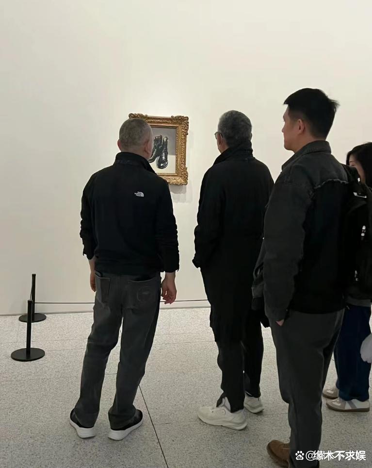 陈道明虽然低调,但阵仗却不小,不止曾梵志站在他旁边认真讲解,身后还跟着两位助理。陈道明则双手揣兜,潇洒十足。