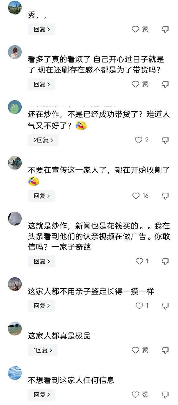 网友们被某些网红欺骗过,现在对谢清帅的故事已经有点厌烦。有些网友即便认可这件事情的真实性,也不太喜欢谢家人再次出来刷存在感。