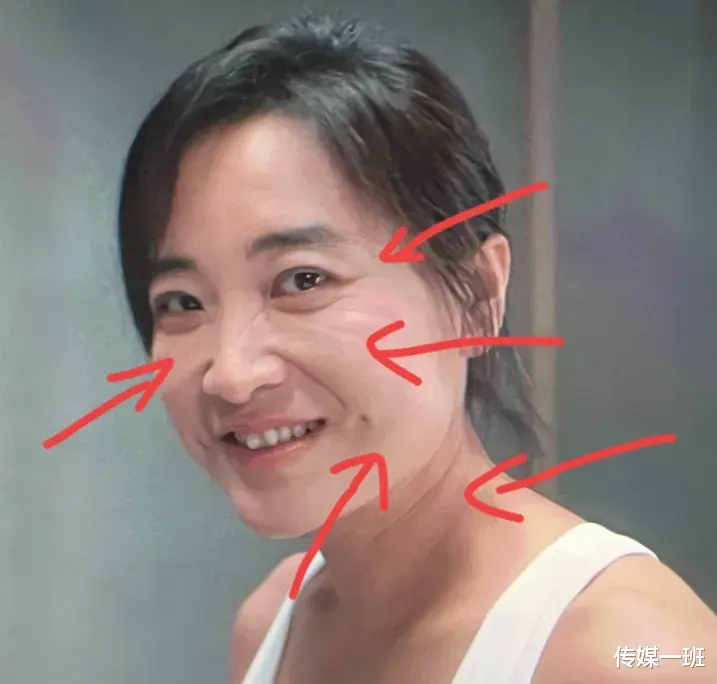 原本脸上不见皱纹的她,现在细纹明显,而且是几道褶皱堆叠在一起。