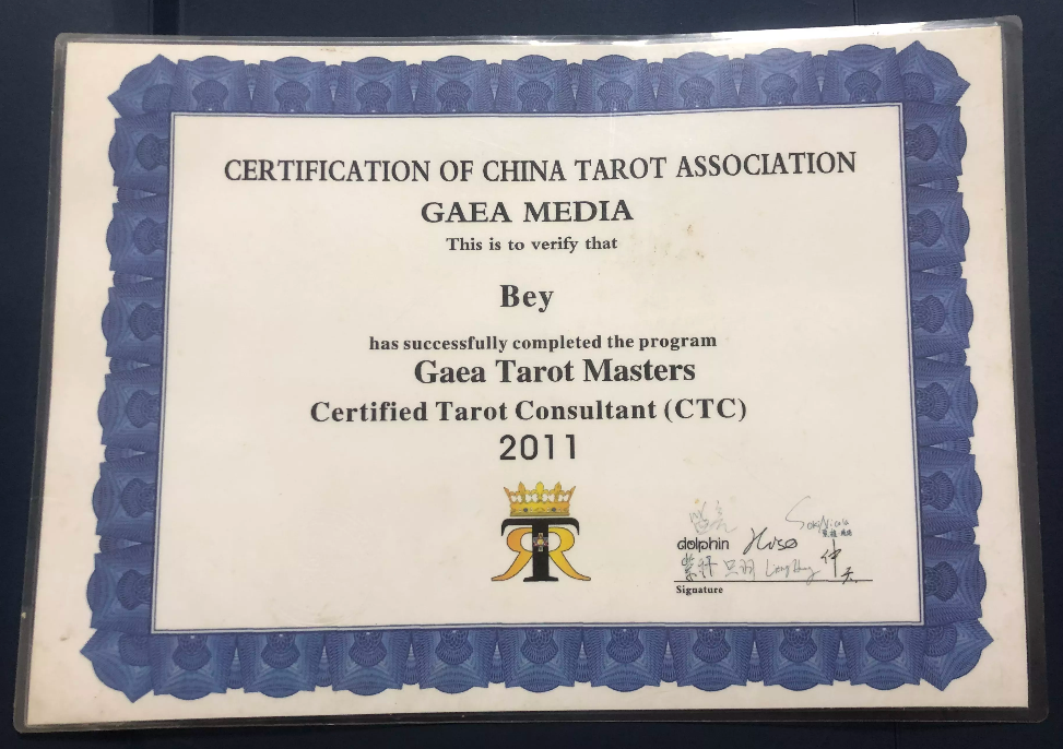 2011年取得CTA认证的塔·罗师资格证书↓↓↓
