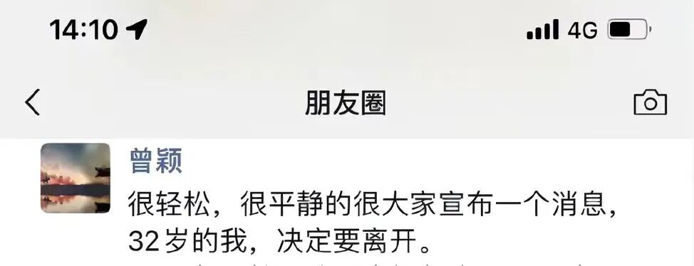 “很轻松,很平静地和大家宣布一个消息,32岁的我,决定要离开。”