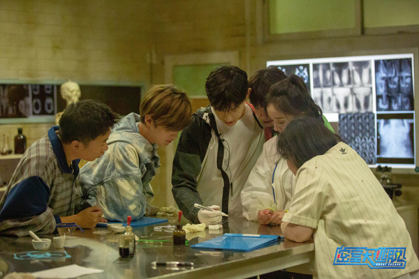 为了寻找线索,杨幂和邓伦不怕脏臭翻找医疗垃圾桶,期间找到的绷带上印着不明线条。此时魏大勋担纲起人形立柱,队友将绷带一圈一圈缠满他的全身才能看清数字。当他的眼睛被蒙上,瞬间让杨幂联想到自己的经典角色“素素”,调侃魏大勋“要跳诛仙台”,还兴奋唱起“凉凉”。惨变绷带木乃伊,则让魏大勋在躲避“毒人”搜捕时步履维艰,笑果十足。